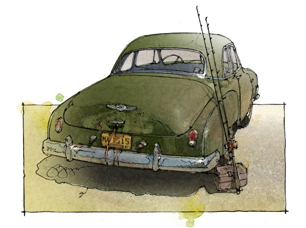 My approach always starts with pencil on paper. From there it goes to the scanner and is shaped and refined digitally, colored with my swatches of pastels and watercolor, and either finished digitally or printed on canvas or paper for traditional painting and drawing. Either way, the scent of pines is no longer defiled by burning acetate.